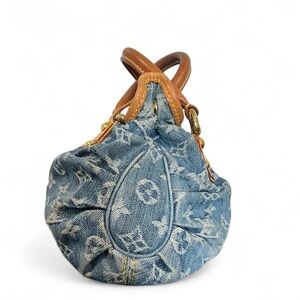 Louis Vuitton Monogram Denim Pleaty Bag Blue Vachetta Trim Handbag with receipt
