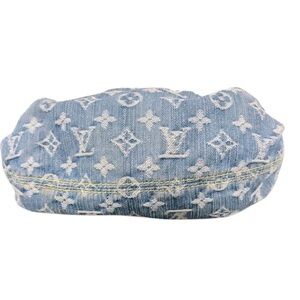 • Color/Material: Blue monogram denim with tan vachetta leather trim