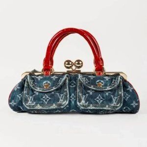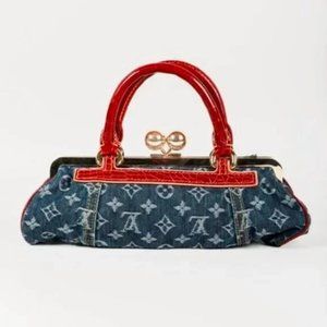 Louis Vuitton Monogram Denim Red Alligator Sac Fermoir GM
