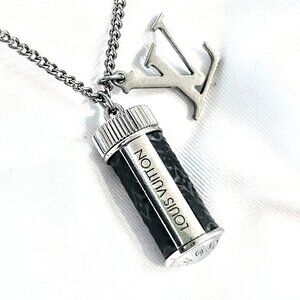 With its iconic Monogram Eclipse canvas sheathed directly onto metal, this must-have necklace has a sophisticated masculine feel. Like an amulet, its cylindrical charm opens to provide its wearer with a secret hiding place.