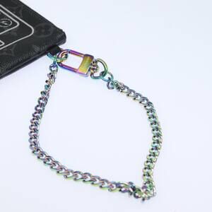This is an authentic 2017 LOUIS VUITTON Fragment Phone Pouch crafted of grey and black monogram eclipse canvas. It features an iridescent chain strap. It opens to a black fabric lined interior. Fits an iPhone ProMax.