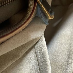 @tleichl no rips or stains. Some of the hardware still has the plastic on it from original purchase. she sits on my shelf stuffed to hold her shape with all my other bags.