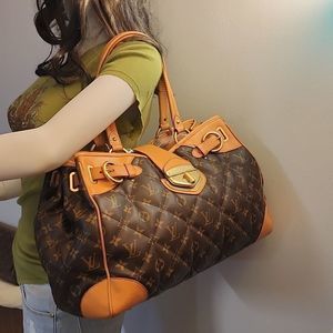 Authentic Louis Vuitton Monogram Etoile GM. RARE Vintage bag in Excellent pre-owned condition inside and out showing minimal wear from light use. Quilted Monogram coated canvas exterior, with leather vachetta trim. light patina throughout. Gold tone hardware. Turn lock closure in f Thick sturdy straps that are easy to carry. Three XL interior compartments, all with zipper closure with lots of storage space. Tan alencatera interior lining pre treatedfor stain prevention. One of LV's best made bags. wallet NOT included The trade value is higher $3000