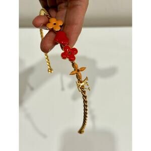 Louis Vuitton Monogram Flower Charm Enamel Gold Tone Braided Chain Headband