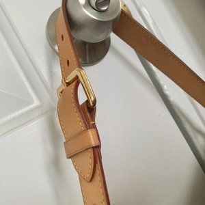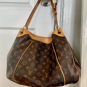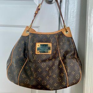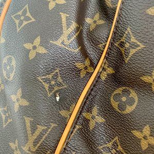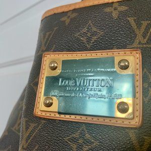 This stylish shoulder bag is finely crafted of classic Louis Vuitton monogram on toile canvas. The shoulder bag features an adjustable vachetta leather shoulder strap, vachetta leather piping and trim complete with polished brass hardware including a large engraved front plate. The top opens to a light beige microfiber interior with a flap pocket and patch pockets.