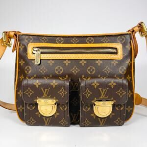 Louis Vuitton Monogram Hudson GM. Comes with strap, leather has patina, piping has some scuffing but overall a nice cute bag.