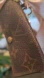 Stylish brown monogram keychain wallet with gold chain and floral accents. Perfect for adding a touch of elegance to your accessories.