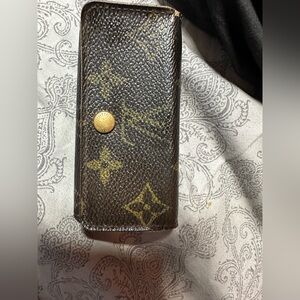 Stylish Louis Vuitton key wallet with iconic monogram pattern. Features brown and gold colors