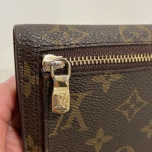 Approximate Measurements: Height 4 Inches Length 5 Inches. 1 exterior Zipper pocket. Production Code is MI0021. It has 9 card slots. ID window. Bill compartment Overall condition is very good. Hardware shows very slight scratches. This is a beautiful everyday wallet.