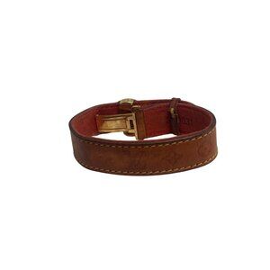 This leather bracelet combines Louis Vuitton's signature monogram with a gold-tone floral clasp for a sophisticated accent to your wardrobe.