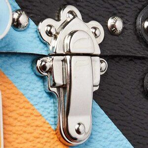 The exterior coated canvas is clean throughout. The hardware is bright and shiny but has a few light scuffs. The leather trim remains smooth. The interior has some indentations but is clean and remains in excellent condition overall.