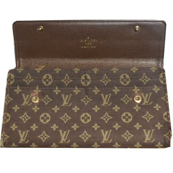 Louis Vuitton Monogram Mini Lin Portefeuille Sarah Wallet Brown w/ Box & Dust Bag