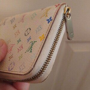 Authentic Louis Vuitton Monogram Multicolor Zippy Compact Wallet. Condition is good with some wear. The exterior shows some yellowing and fading from age and the interior shows some light staining. The zipper is intact and works properly. Please examine the photos for the details.
