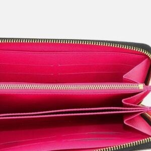 Louis Vuitton Monogram Multicolor Zippy Wallet in Black and Grenade. The gold wrap around zipper opens to a fuchsia interior with card slots, a zipper compartment, and patch pockets.