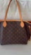 The Neverfull tote unites timeless design with heritage details. Made from supple Monogram canvas with natural cowhide trim, it is ultra-roomy but never bulky, with side laces that cinch for a sleek allure or loosen for a more casual look. Slim, comfortable handles slip easily over the shoulder or arm. Lined in colorful textile.