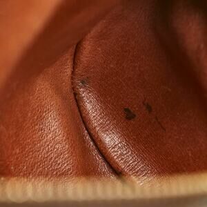 Outside - Deformation, peeling, fabric lifting Side - Peeling edges Bottom - Corner fraying, peeling edges Handle - Cracking edges, peeling, fabric lifting, stains Metal fittings - Peeling plating, patina stains, discoloration Inside - Dirt, scratches, peeling
