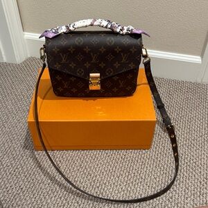 Louis Vuitton Monogram Pochette Mettis with Louis Vuitton Scarf Wrap