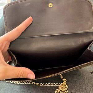 Pre-owned in amazing condition. The photos speak for themselves! This clutch is a vintage piece but still in great condition. It comes with an aftermarket crossbody chain and bow.