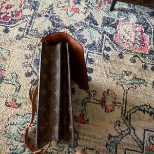 Louis Vuitton Monogram Vintage document briefcase, inside pocket and outside pocket had peeling (has been cleaned out), lock works, handle has been replaced with vachetta, crossbody strap has been added (not original), no cracking on outside canvas, hardware is scratched, date code MI 0994, 15 L x 10 H x 4 W, this is a vintage bag in fair to good condition. Please look at pics.