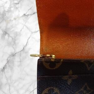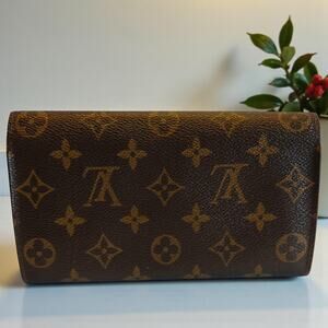 This is a pre-owned authentic Louis Vuitton Monogram Portefeuille Sarah wallet. This classic wallet is in good condition and ready to be your everyday essential.