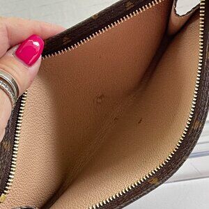 Louis Vuitton Monogram Pouch Leather Brown Zip Logo Used (116075)