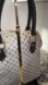 Chic satchel with iconic monogram. Cream body with black handles. Gold hardware adds elegance. Bag may have signs of fading, discoloration, stains/ink stains, rubbing, peeling, slight storage smell(hardly noticeable), scratches on handles and some cracking (hardly noticeable). Also coin area may have coin residue. Hardware may have signs of tarnishing. Please read before purchasing. Thank you.