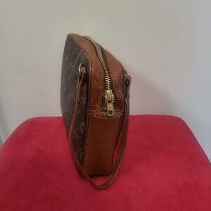 Nice clutch size 23, caramel leather color, Monogram in great condition, interior very clean for her age, fro t pocket clean, BOTH ZIPPERS BEEN REPLACED, overall leather is good... Elevate your style with this Louis Vuitton clutch in a classic brown monogram design. Perfect for any occasion, this bag combines luxury and functionality.