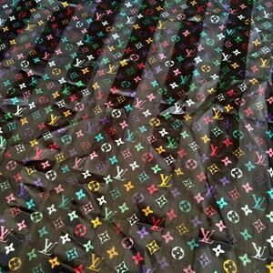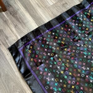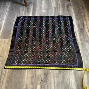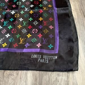 Louis Vuitton Monogram Scarf Bandana Multicolor Silk Striped Black Vintage