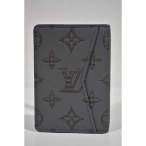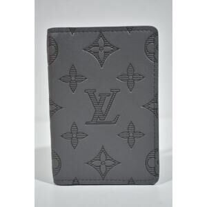 Louis Vuitton Monogram Shadow Grey Leather Logo Pocket Organizer Card Wallet