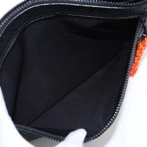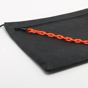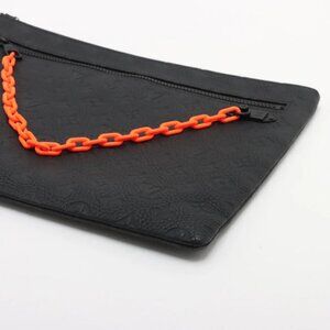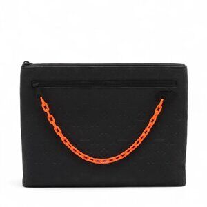 The Louis Vuitton Monogram Taurillon A4 Pochette in Black is a sleek and contemporary piece that combines luxury with modern edge. Crafted from supple monogram taurillon leather, it showcases a refined black finish enhanced by a bold orange chain link detail on the front, adding a striking contrast. Designed with practicality in mind, it features a spacious interior that easily fits documents, tablets, and daily essentials, making it perfect for both professional and casual use.