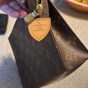 Stylish Louis Vuitton toiletry bag. Iconic monogram pattern. Perfect for travel essentials.