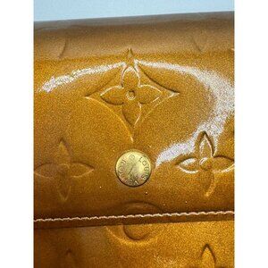 The Louis Vuitton Monogram Vernis wallet exudes sophistication with its luxurious shimmering gold finish. Code TH0012. Crafted from Cuir Verni, it showcases the iconic monogram pattern, adding a touch of elegance to your ensemble. Interior with 6 card slots. Minimal scuff marks on interior (please see pics) This wallet is designed with precision to organize your essentials, making it a practical yet stylish accessory.
