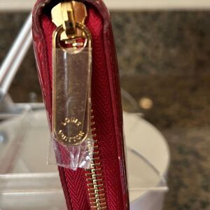 Louis Vuitton Vernis wallet in a striking red with beautiful gold hardware including a brand new zipper replaced by LV. The interior looks almost perfect and the exterior just has a small amount of discoloration. The wallet comes with an LV box and dust bag! Measures approx 4.5"h x 7.7"w x 1"d,