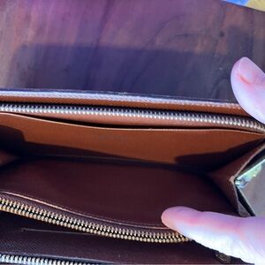 LOUIS VUITTON WALLET LONG IN GOOD USED CONDITION.SOME SLIGHT PEELING ON INNER COIN POCKET LITTLE COLORING IN COIN POCKET OVER ALL GOOD CONDITION.DOES SHOW SOME WEAR LOOK AT PICTURES THERE IS A SERIAL NUMBER.