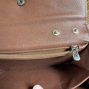 Elegant Louis Vuitton wallet featuring the iconic monogram design. Perfect for adding a touch of luxury to your everyday essentials. The classic brown color complements any outfit.