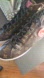 Stylish high-top sneakers with iconic Louis Vuitton monogram. Features black and brown design with white soles call-out creases, minor marks, lite hardwear scratches, and lite sole wear. Good condition authentic and ask questions because once purchased, they are yours otherwise gorgeous shoes for the label lover's 2017 Monogram calfskin World Tour Sneaker
