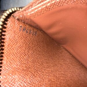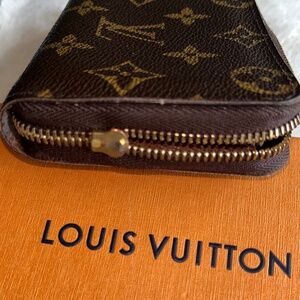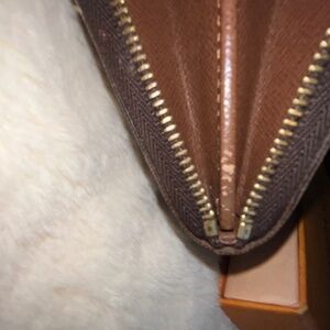 Two small interior edge wear spots on (one on each side) are unseen when wallet is closed.