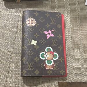 Elegant notebook cover with iconic monogram. Features playful floral and character designs. Red and pink accents add charm.2024 Christmas collection extremely hard to find will include 2 magnet charm will come with box and all original packaging