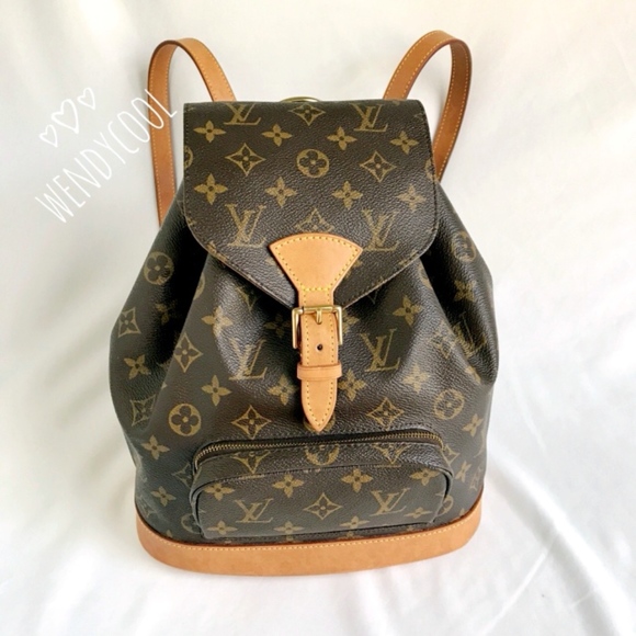 ππ»ππ»The best one I have had! Made in France! Super practical & beautiful medium size montsouris backpack (perfect size see reference on Kylie Jenner wearing ) handsfree everyday or travel going about fashionable light weight bag like feather in excellent condition thick canvas well made Free authentication service with the purchase! Beautiful lovely bag pretty clean inside too! pictured honey color patina water marks a few dark spots scrat light scuffing etc such as pictured and closeups