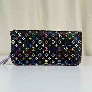 Louis Vuitton Multicolor Black Leather Wallet with Colorful Monogram Design