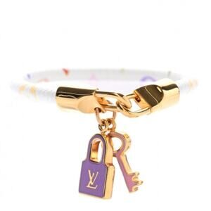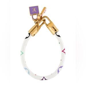 Louis Vuitton Multicolor Monogram Lock & Key Charm Bracelet White Leather Gold ✨