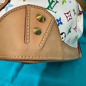 Date Code: SR3141; Stylish Louis Vuitton tote with multicolor monogram. Features tan leather handles and trim. Perfect for everyday use. Canvas is in very good condition; Multicolor monogram print is still vibrant; Leather trim has an even honey patina, shows minor signs of use; Interior is clean. Overall a beautiful bag.