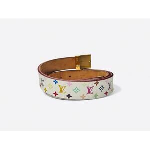 Vintage First run edition. Louis Vuitton belt from the rare Takashi Murakami x LV collection. White Multicolor monogram canvas with gold-tone hardware. Includes box.