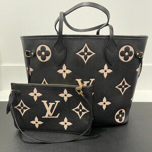 Louis Vuitton NWT Neverfull MM Empreinte Monogram Giant Black Beige (JB1299)