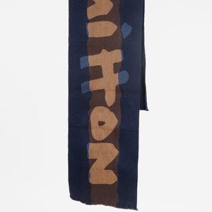 Louis Vuitton Navy Brown Letters Wool Scarf