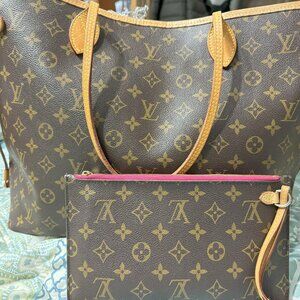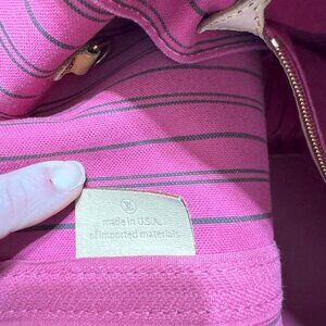 LV 2019 Neverfull GM PIVOINE made in the USA. The Neverfull GM is an iconic bag but this exact bag is no longer being produced. The inside lining is the beautiful dark pink color. This bag is HUGE! I have used it for my work bag, carryon when traveling, and just an every day bag.