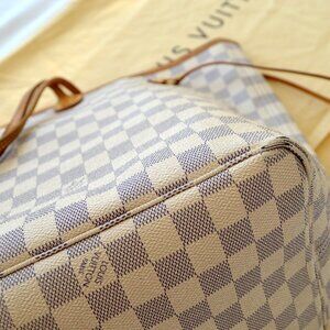 Louis Vuitton Neverfull GM azur checkers gray and cream tote bag, pink lining