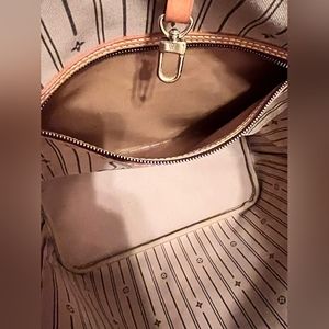 Inside is very clean, In excellent used condition. Please note: My daughter accidentally pulled two of the back straps of the bag from my closet, causing them to break. I’ve since fixed them myself, and the repair is not obvious when carrying the bag unless you zoom in. The front straps weren't affected. Really cute bag! Takes everything and fits all occaison.