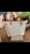 Stylish checkered tote and wallet set in cream and tan. Perfect for everyday use.