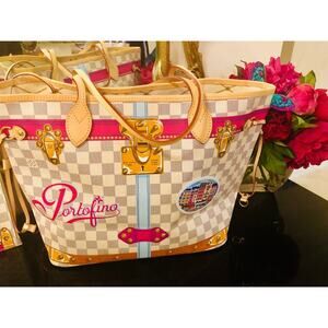 Louis Vuitton Neverfull MM Portofino Damier Azur Summer Trunk Bag Purse Rare LTD